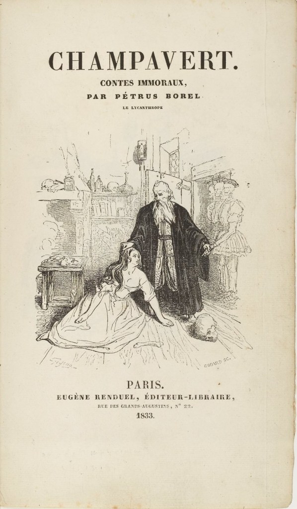 Par les détours d’un hasard auquel, comme toutes les âmes avançant en âge, je commence à ne plus croire (car le vieillissement a ceci de bénéfique qu’en élargissant le champ de nos expériences sensibles, il augmente aussi notre faculté de recul et notre probabilité de les voir se relier entre elles), je suis retombé ce jour sur un ouvrage de Pétrus Borel, Champavert, contes immoraux, acquis il y a bien longtemps et dont je n’avais jamais lu que le préambule. C’est à lui que je suis revenu m’abreuver une fois encore, et à ces toutes premières phrases – les seules dont mon cerveau avait gardé une trace assez sûre : “C’est toujours un pénible emploi que celui de détrompeur, c’est toujours une pénible corvée que celle de venir enlever au public ses douces erreurs, ses mensonges auxquels il s’est fait, auxquels il a donné sa foi; rien n’est plus dangereux que de faire un vide dans le cœur de l’homme.”
